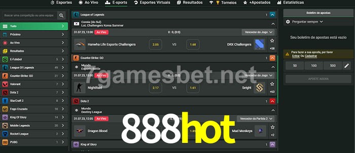 A aposta 888hot oferece aos jogadores a experiência mais conveniente de apostas em eSports!